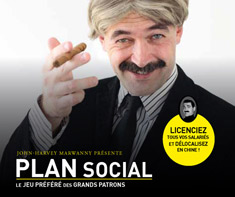 En période annoncée de crise économique, Plan social est un grincement de dents qui propose de se mettre dans la peau d'un grand dirigeant d'entreprise décomplexé qui licencie à tour de bras et y prends du plaisir. Le but du jeu : se débarrasser de tous ses salariés pour réussir son plan social, ce qui donne le droit au joueur devenu grand patron de "délocaliser dans un pays totalitaire où la main d'œuvre est bon marché". L'humour est noir, sans gants, et peut laisser pantois si on oublie de passer la marche du second degré. La Marwanny Corporation, dont le siège social est basé virtuellement en Suisse, décrit un monde de spécialistes corporate et d'experts en charlatanisme, de consommateurs gogos et de fantasmes boursiers. Une caricature donc, ou si peu...