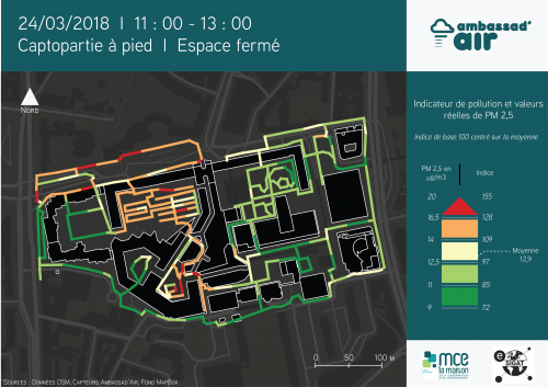 - Interprétation et conclusion (1h) : la dernière séance était celle de la restitution collective des résultats de leurs mesures sous forme d'une cartographie (1h).
