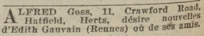 Le 1er août 1945, le Captain Alfred Charles Goss sortit en uniforme de l'église Saint-Germain, au bras de sa jolie française, Edith, en longue robe de mariée. Ils vécurent en Angleterre et eurent... sept enfants.