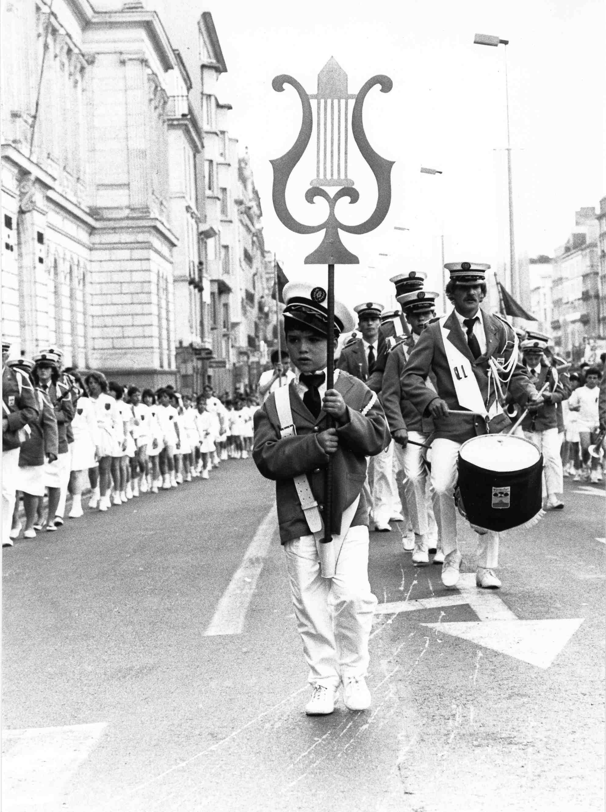 Défilé de la fanfare sur les quais, milieu du XXe siècle. Archives de Rennes, 29 Z 155_35.
