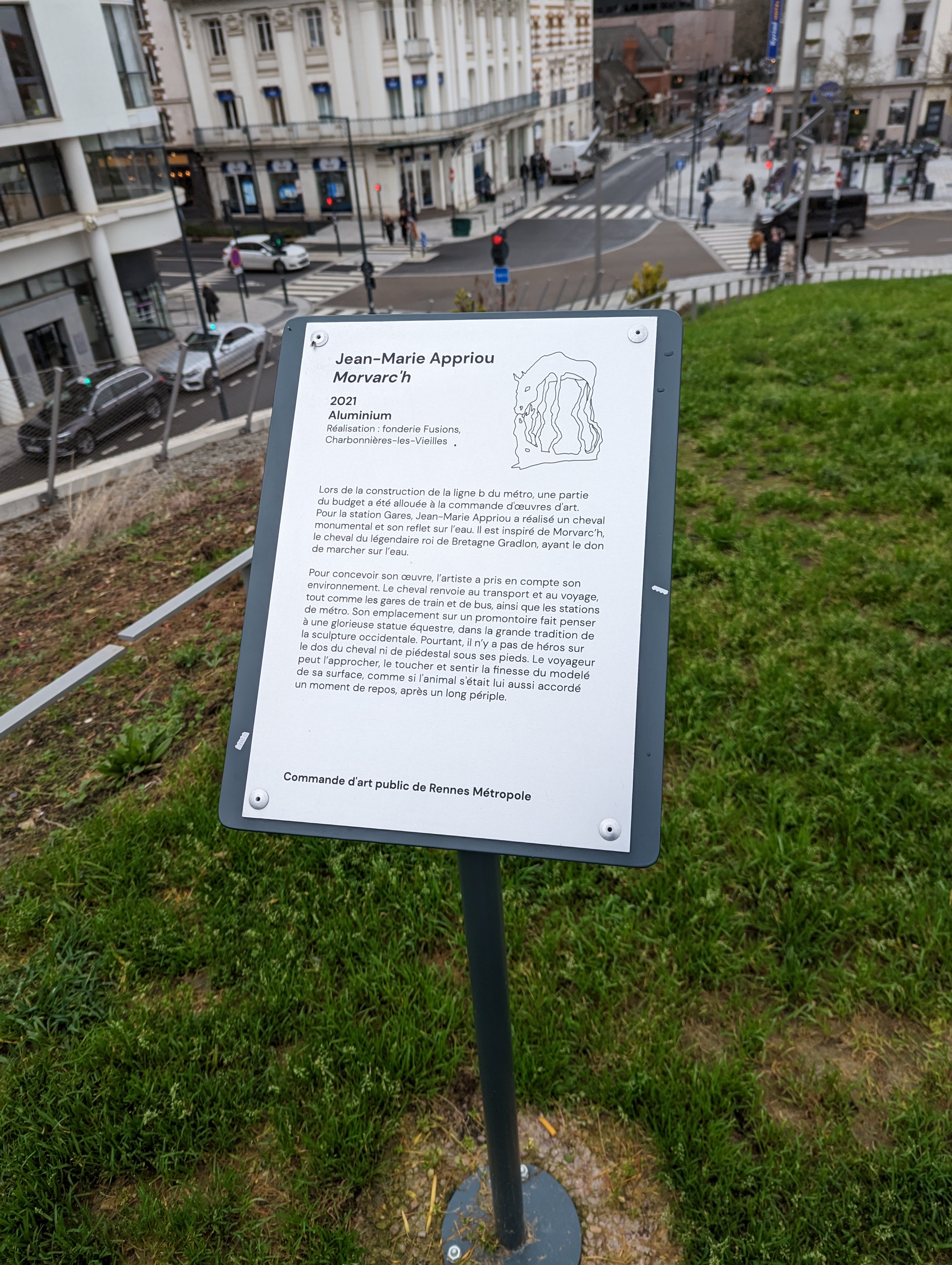 Panneau signalétique de la statue équestre de la gare de Rennes