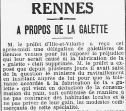 Mais le préfet régional, considérant que la galette de sarrazin est une denrée traditionnelle de la Bretagne, usant de la faculté ouverte par l'arrêté, autorise, par arrêté en date du 1er juillet, la fabrication et la vente des crêpes et galettes de sarrazin comme par le passé[3]. Quant à la saucisse... ce n'était pas pensable et mieux valait ne pas y penser en ce temps-là, sauf à être masochiste !