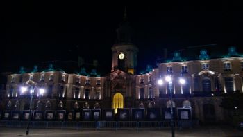 Le pavillon du nord est consacré aux tribunaux de première instance et de commerce. Au-dessus, dans les mansardes, a été placée la bibliothèque publique de la ville. Formée en 1733, par une corporation d'avocats, qui avaient pour but d'y réunir les livres de leur profession, elle s'est depuis enrichie de la dépouille de toutes les bibliothèques monastiques, dont on n'a conservé que ce qui méritait de l'être : le reste a été vendu pour l'amélioration de l'établissement, qui offre aujourd'hui une des collections les plus complettes qu'il y ait en France. Le nombre des volumes est d'environ 30,000 : on y trouve des manuscrits précieux, les éditions les plus rares des auteurs anciens, et celles qui se rapprochent du berceau de l'imprimerie.'Je l'ai vu remplie d'élèves de réthorique, de philosophie, de droit et de chirurgie, qui m'ont, sans le savoir, donné l'idée la plus avantageuse de l'amour des sciences répandu dans cette ville.'' »