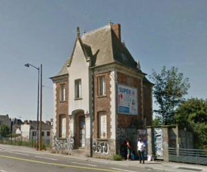 , architecte et Henri Robert, entrepreneur Pierre. Il s'agissait d'un petit bâtiment en béton d'un seul étage, avec toit d'ardoise. Mais un tout autre équipement est prévu dans ce quartier car l'antenne située sur le toit métallique de l'aile ouest du palais du Commerce ne donne plus satisfaction et L'Ouest-Eclair du 15 octobre 1930 annonce une interruption des émissions pour travaux pendant une quinzaine de jours en vue d'installer un nouveau poste émetteur de TSF à l'angle de la rue de l'Alma et de la rue Ginguené où ont été implantés deux pylônes de 36 mètres de hauteur espacés de 50 mètres, entre lesquels sera tendue l'antenne. Un câble souterrain relie le nouveau centre émetteur au studio du palais du Commerce, alors appelé hôtel des Postes. La distance à la terre est ainsi portée à 40 mètres. Le nouveau poste émit à partir du 15 novembre. [6]