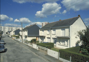 Ainsi, le long de dix rues entre le boulevard Oscar Leroux au nord et le boulevard Louis Volclair au sud, 167 maisons, soigneusement alignées, toutes de la même taille (68 m2), ont été bâties, chacune sur une parcelle de terrain de 242 m2, entre 1953 et 1958 par leurs futurs habitants, dans un esprit de coopération selon les capacités techniques de chacun mise à la disposition des autres, remarquable illustration d'entraide humaine. En 1954 c'est l'initiative des cités d'urgence et l'une d'elle fut montée à Cleunay. Ici, des gens se sont pris par la main et ont agi d'eux-mêmes. Le cahier des charges donnait les règles d'urbanisme régissant l'implantation des maisons jumelées réalisées sur un plan type avec variante (entrée en façade antérieure ou en pignon). Les maisons de TYPE 4 disposent d'un séjour, d'une cuisine et d'un cellier-buanderie au rez-de-chaussée et de 3 chambres et salle d'eau à l'étage ; les maisons de Type 6 comptent 1 chambre supplémentaire à chaque niveau.
