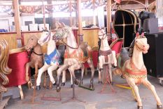 Les chevaux de carrousel, normalement placés dans des manèges.