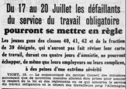 Loi de Vichy pour contraindre au STO (Ouest-Eclair du 12 juin 1943)