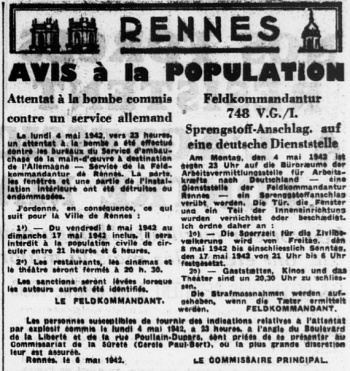 Dès mai 1942, un attentat contre les locaux de recrutement de main-d'œuvre pour l'Allemagne
