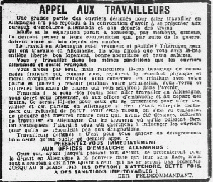 La promesse de gros salaires pour pallier les absences de requis au STO (Ouest-Eclair du 1er décembre 1943)