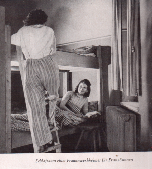 Chambre d'un foyer de travailleuses françaises. De Europa arbeitet in Deutchsland - Berlin 1943. L’Europe travaille en Allemagne