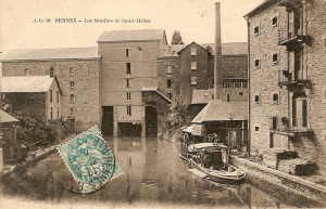 Les Moulins de Saint-Hélier, autrement appelés Grands Moulins de Rennes, sont situés derrière le Théâtre National de Bretagne sur un bras de la Vilaine.