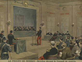 [[Fichier:Le_proc%C3%A8s_de_Rennes.png|340px|right|thumb|Dreyfus devant le conseil de guerre à Rennes]] | [[Fichier:Le_proc%C3%A8s_de_Rennes.png|340px|right|thumb|Dreyfus devant le conseil de guerre à Rennes]] | ||