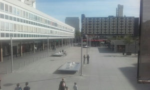 <br><br><br>La dalle du Colombier est un endroit qui reste très fréquenté, puisqu'elle constitue une entrée ou sortie de la galerie commerciale du [[centre Colombia]]. La présence de commerces (bureau de tabac, brasserie) en fait une place vivante. Il a été tenté d'atténuer le côté froid et minéral de la dalle avec : | |||