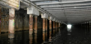 [[Fichier:Vilaine_sous_parc-auto.png|300px|center|thumb|La Vilaine couverte entre quai Duguay-Trouin et quai Lamennais]] | |||