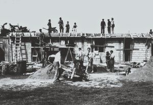 [[Fichier:Les auto-constructeurs de la rue Jean Coquelin.jpg|vignette|Travail plus facile avec la bétonnière]] | |||