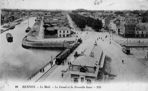 [[Fichier:Mail_et_gare_des_tramways.png|300px|center|thumb|La gare des TIV, le Mail et le [[quai de Saint-Cyr]] et le [[quai de la Prévalaye]] (''Archives de Rennes. 100FI644'') ]] | |||