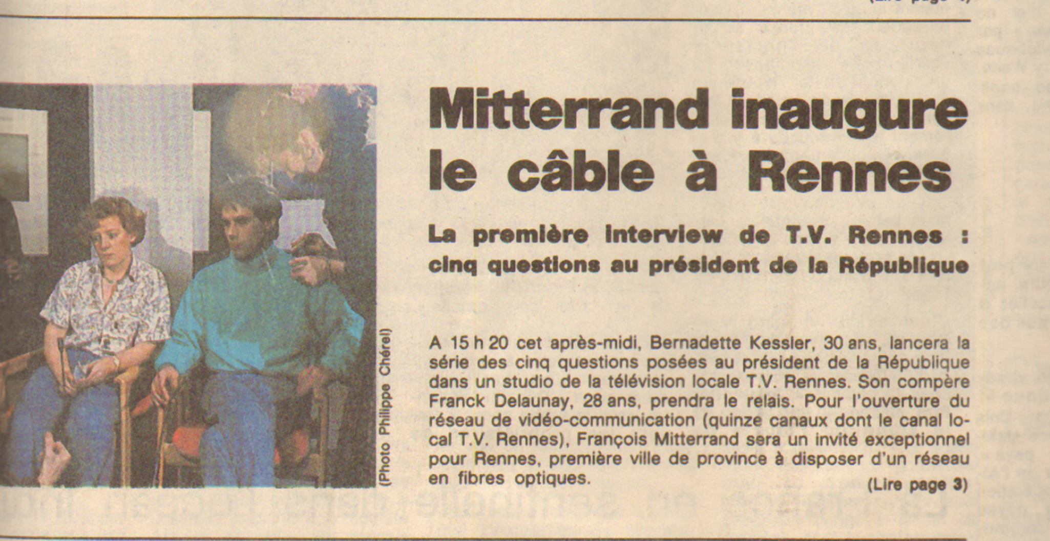 Le câble et TV Rennes sont lancés au Triangle, Ouest-France, 21-22 mars 1987. Archives de Rennes, 20 PER.