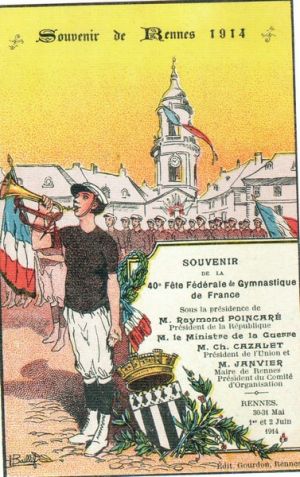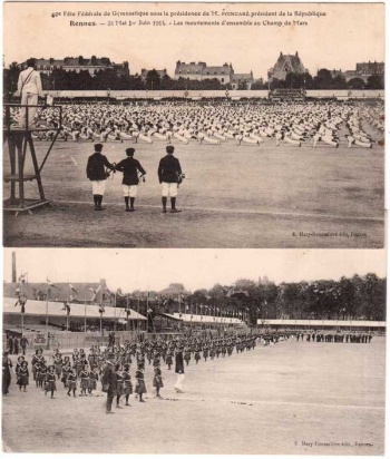Après un discours de M. Janvier, ce fut celui de M. Cazalet, président de l'union des sociétés de gymnastique de France qui tenait à Rennes la 40e fête fédérale de gymnastique, occasion de grand rassemblement des sociétés mais aussi de délégations belge, italienne, luxembourgeoise, italienne et de groupes de Saint-Petersbourg et de Southampton.