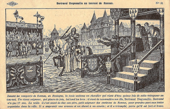À Rennes, c'est en 1327 que ce nom est connu pour la première fois, car pour le mariage de la Duchesse de Bretagne, Jeanne de Penthièvre, dite la boiteuse, avec Charles de Blois, le neveu du roi de France, un tournoi est organisé et un certain Bertrand Du Guesclin va entrer en lices, se faire connaître en effectuant son premier combat.