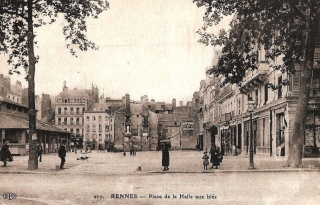 Place de la Halle aux Blés (côté est - à droite, l'immeuble dans l'angle du boulevard de la Liberté et de l'actuelle rue Jules Simon, qui n'est pas encore percée). Le Déley (ELD 210). Coll. YRG et AmR 44Z1398