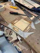- Collage des pièces de l'objet : comme nous avons voulu confectionner une boîte en forme de trapèze, il fallait usiner les chants de certaines pièces pour leur donner du biais, ce que la découpeuse laser ne peut pas faire. Il a donc fallu retoucher à la Dremel, ce qui n'est pas forcément facile pour tout le monde. Peut-être qu'un design de boîte à imprimer en 3D pourrait être une option pour les makers les moins manuel·les.